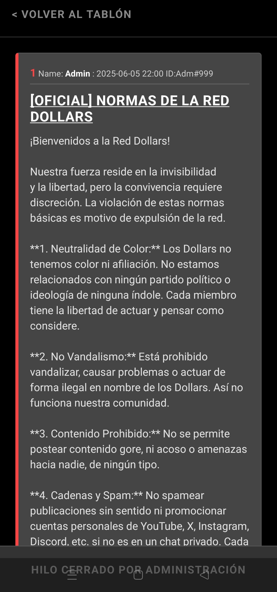 Dicho esto, ya he creado la app y estoy en un proceso para subirla a play store, pero prácticamente ya está para ser subida. Por supuesto que tendré que cambiar varias cosas y tal por tema de seguridad y eso. Dejo una imagen de un post fijado con las reglas para que más o menos veais como es.