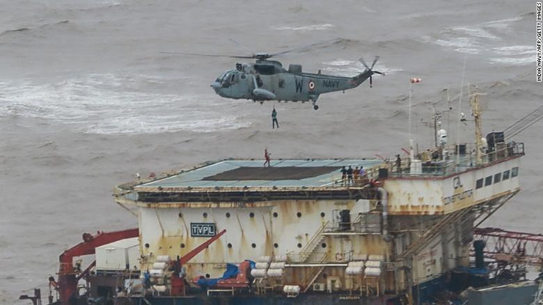 Another barge, the Gal Constructor, ran aground off the west coast of Mumbai on Monday. The navy deployed a helicopter and several emergency vessels to evacuate the 137 crew members on board, all of whom are accounted for.